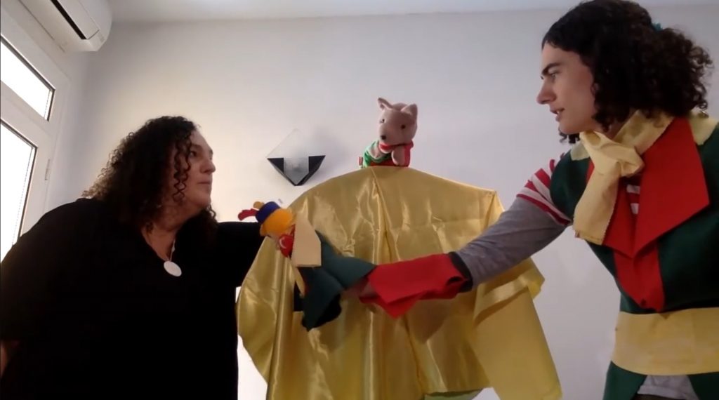 Un cop cadascú s’ha fet el seu titella, representarem l’obra seguint el fil de la història, no cal que en recordin les frases exactes, sinó que s’expressin com vulguin segons el seu personatge. Podem afegir-hi les cançons i les imatges com a decorat, i amb uns quants assajos tindrem una dramatització per a fer davant dels pares i familiars, o els companys d’altres classes.