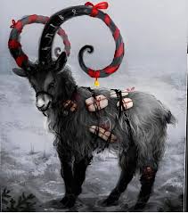 volien aconseguir els meus favors i obtenir bones collites, no sigui que m’enfadi, i decideixi enviar-los una pedregada fora d’hora, i adéu-siau collita! - Em diuen la Cabra de Yule! Avui en dia ja no em maten ni em mengen, l’actual cabra de Yule està feta de fusta i palla, i serveix per adornar els carrers i desitjar sort als veïns. En algunes poblacions en construeixen una de gegant, al voltant de la qual fan totes les celebracions, i el darrer dia de festes la cremen.