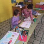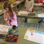 A la classe de plàstica hem fet volar la nostra imaginació i creativitat!!. Purpurina, ceres, guixos de colors, papers de diferents textures,…tot el que hem cregut per fer les nostres produccions artístiques!!.