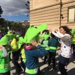 Ahir dilluns els nens i les nenes de 3rA i de 3rB vam poder celebrar el Carnaval a l’ escola. El pati es va omplir de colors: blanc, vermell, lila, blau, groc ,… i verd!!.