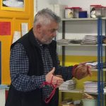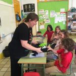 Després d’ esmorzar i per grups vam poder visitar les instal.lacions. Els diferents monitors ens van explicar moltes coses interessants: la responsabilitat que suposa tenir un animal a casa, la importància de posar-los el xip i censar-los, com i amb quins aparells recullen els gats i gossos que es troben al carrer, què és una colònia de gats …, però sobretot van insistir en la necessitat que aquests animals necessiten estima, com les persones, i unes cures bàsiques, alimentar-los i portar-los al veterinari. I que, abans de comprar un cadell de gat o gos, pensem en tots aquells que estan al CAAD, no estan en un “hotel” allà, hi són perquè els han abandonat. També van poder tocar alguns gossos i, fins i tot, una fura!!