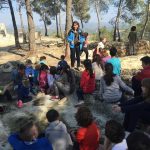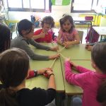 Ens vam organitzar en grups i vam haver de buscar “pistes” per l’ escola… Després, l’ Iu, ens va ensenyar com fer un nus mariner i una brúixola casolana.