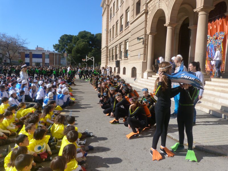Aquest curs el carnaval s’ha dedicat al món del mar. Els nois i noies de 6è anaven de submarinistes al ritme de “Se la llevó el tiburón” i “Lay on your love on me” de Mamma Mia.
