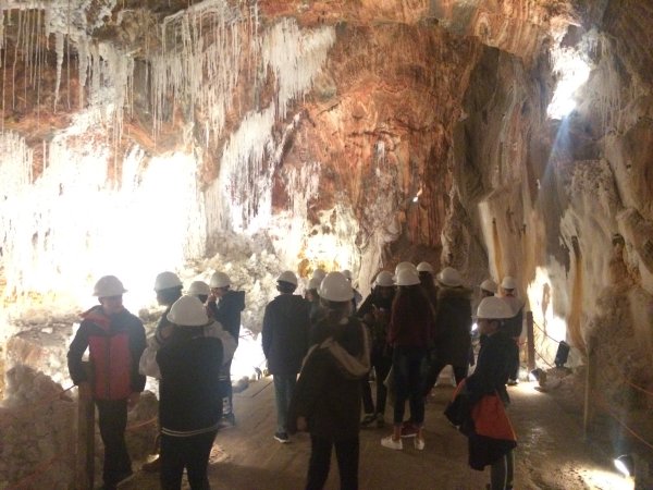 Després de fer els cinc experiments vam viatjar cap a les mines en un “party furgo” i quan vam arribar ens vam posar els cascos de protecció i hi vam entrar. Hi havia sals de tots colors: blanca, vermella, marró, grisa… Estaven plenes d’estalactites i estalagmites que formaven columnes. Ens van explicar que a les mines vivien ratpenats, la majoria dormint, però alguns eren coberts de sal. Una de les coses que més ens van fascinar va ser que hi havia explosius.