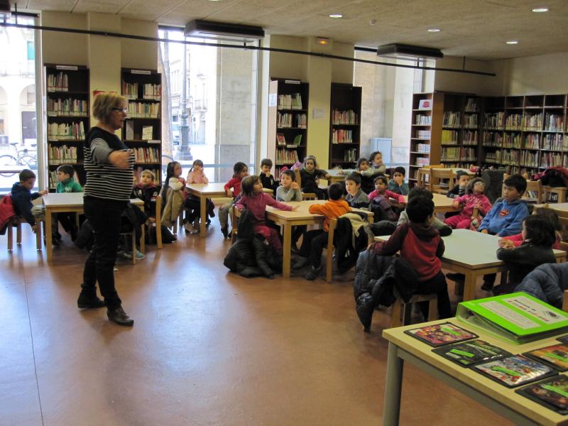 Les nenes i el nens de la classe de P5 els lleons, el passat dia 13 de gener vam anar a visitar la biblioteca Joan Oliva. Aquí ens van explicar l’organització dels llibres i contes que hi podem trobar i les normes que hem de respectar, després vam poder agafar i fullejar alguns contes!