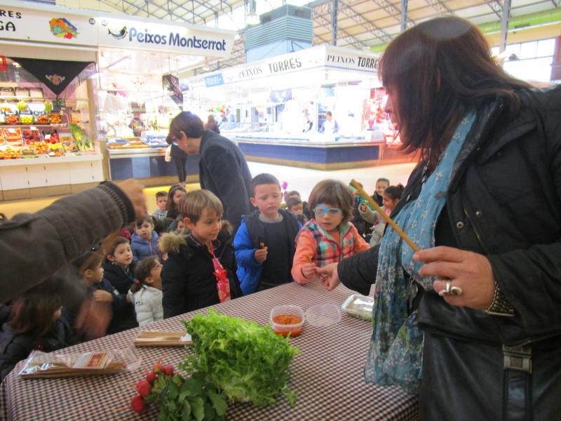 EL DIJOUS GRAS ELS NENS I NENES DE P5 VAM ANAR AL MERCAT DE VNG A COMPRAR ELS INGREDIENTS PER FER LA XATONADA A L’ESCOLA. ALLÀ ENS VAN EXPLICAR EL CONTE D’EN XATÓ I ENS VAN CONVIDAR A TASTAR LA SALSA DEL XATÓ VILANOVÍ