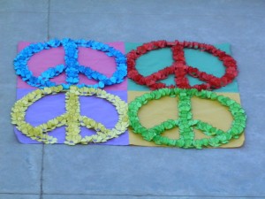 Com a testimoni de la celebració, hem elaborat entre tots un mural, on cada nen/a ha fet una flor i l’hem anat enganxant per cicles en un mural tot formant els símbols de la pau.