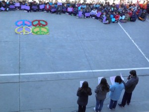 Entre activitats com lectures, visionat de pel·lícules i animacions per a la Pau, ens hem trobat tot l’alumnat al pati de l’escola per fer un acte conjunt representant un símbol de Pau, que aquest curs ha estat l’arc de San Martí.