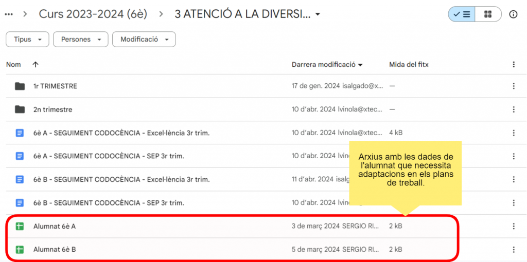 - Crear l’estructura de la plataforma digital per l’alumnat amb necessitats: l’estructura del Classroom és la mateixa creada a l’Àrea 1 a nivell de centre.