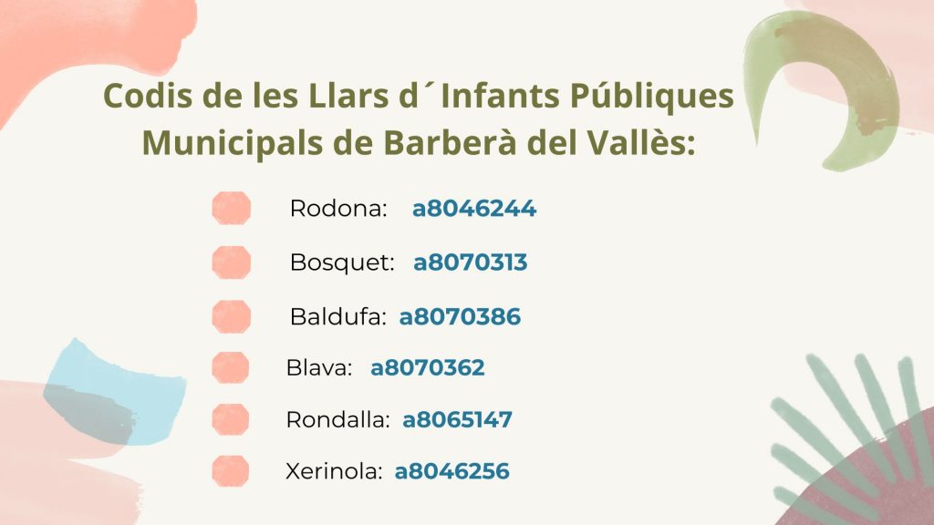 Tanmateix, us adjuntem el cartell amb els codis de cadascuna de les llars d´infants: