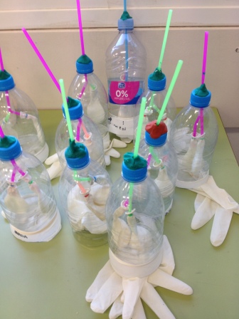 Els nens de 4t, a classe de medi, hem fet una maqueta sobre el funcionament dels pulmons, ja que estem estudiant l’aparell respiratori. Havíem de po rtar la meitat de una ampolla amb un forat al tap i, amb dos globus, dos gometes, un guant, un trosset de plastilina i una miqueta de celo l’hem feta.