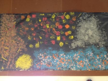 Col.lage. Vam fer un passatge de tardor amb paper crespó i enganxàvem trossets de paper , ni petit ni gran.