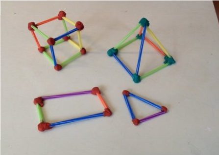 Els nens de 4rt, un dia del primer trimestre, a la classe de Mates, vam fer figures geomètriques. Estàvem estudiant la geometria. Les vam fer amb plastilina i canyetes. Vam fer figures planes i tridimensionals com: Cub, triangle, piràmides, ….