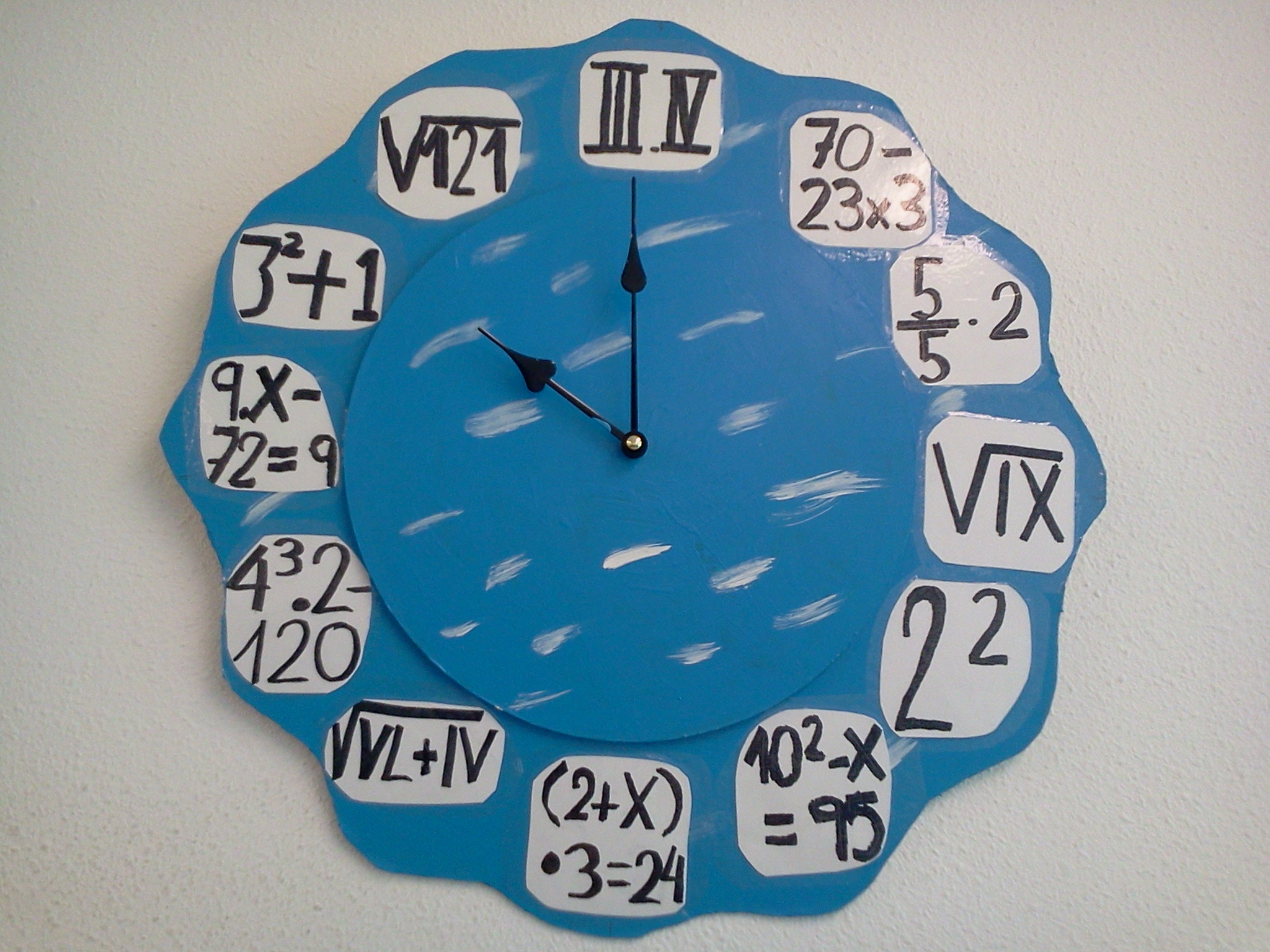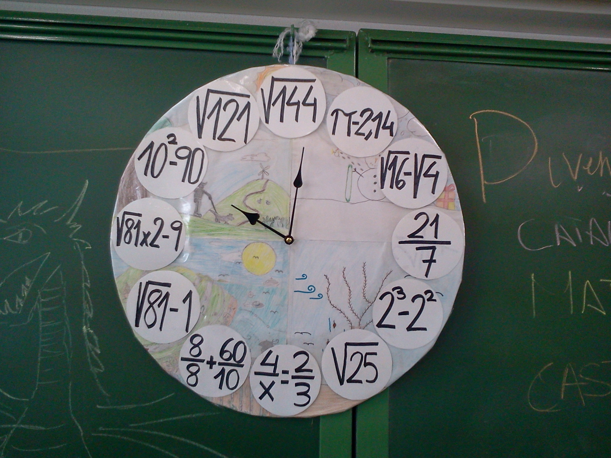 Per grups vam estar pensant expressions matemàtiques que donessin com a resultat els nombres de l’1 al 12. Les vam posar en comú i vam triar les que ens van semblar millor per a posar en el nostre rellotge.