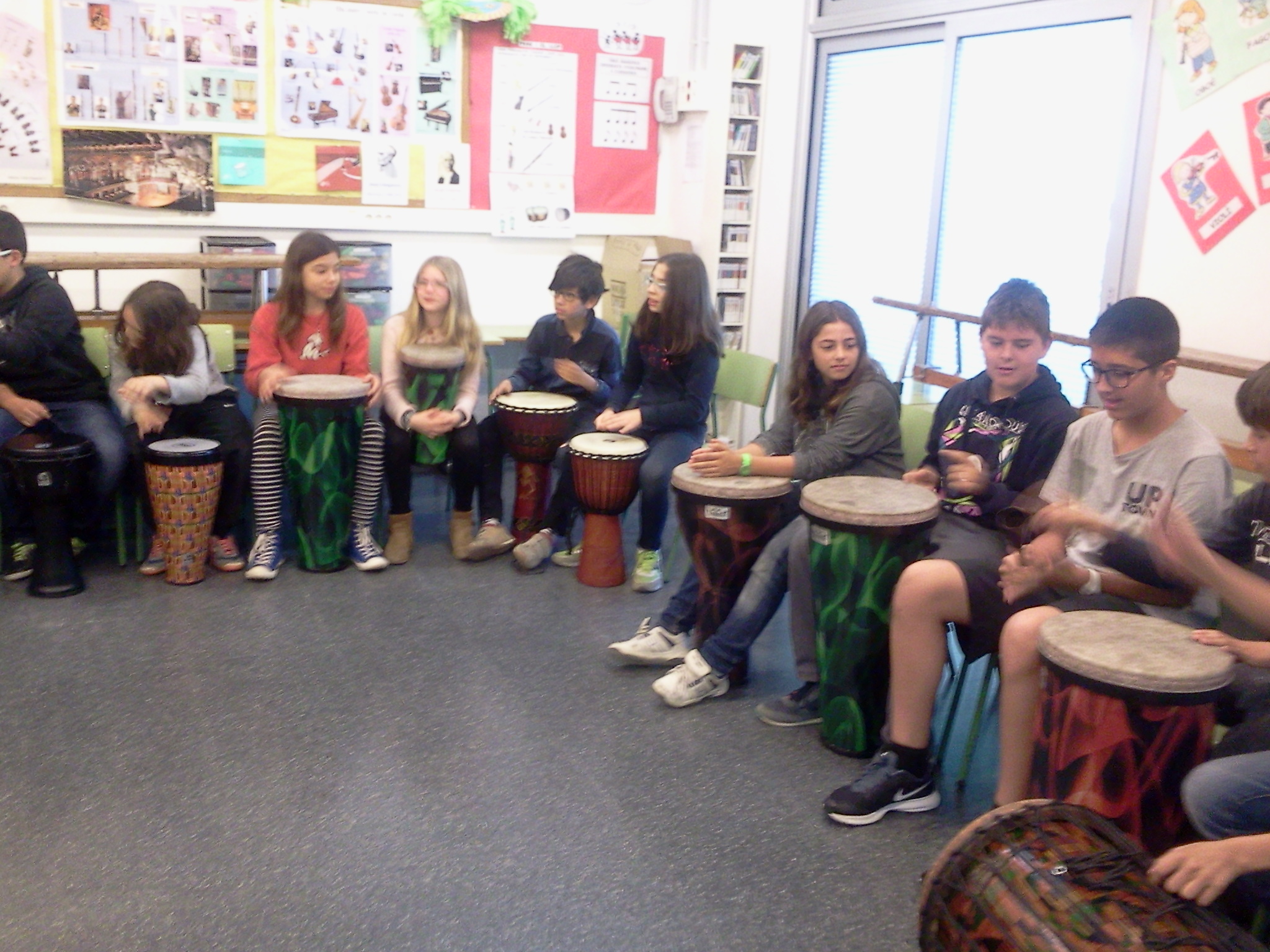 A continuació vam seure i ens va donar instruments. La majoria eren tambors de diferents mides. Ens ajuntàvem segons el tipus d’instrument i cadascú feia un ritme diferent i el conjunt sonava molt bé.