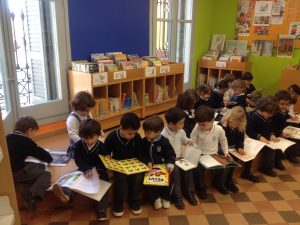 El dijous 15 de març els alumnes de P5 vàrem anar a la biblioteca P. Fidel Fita d’Arenys de Mar. Quan vàrem arribar l’Anna, la bibliotecària, ens va rebre amb un gran somriure i ens va explicar què és una biblioteca i quines són les normes que cal seguir pel seu bon funcionament.