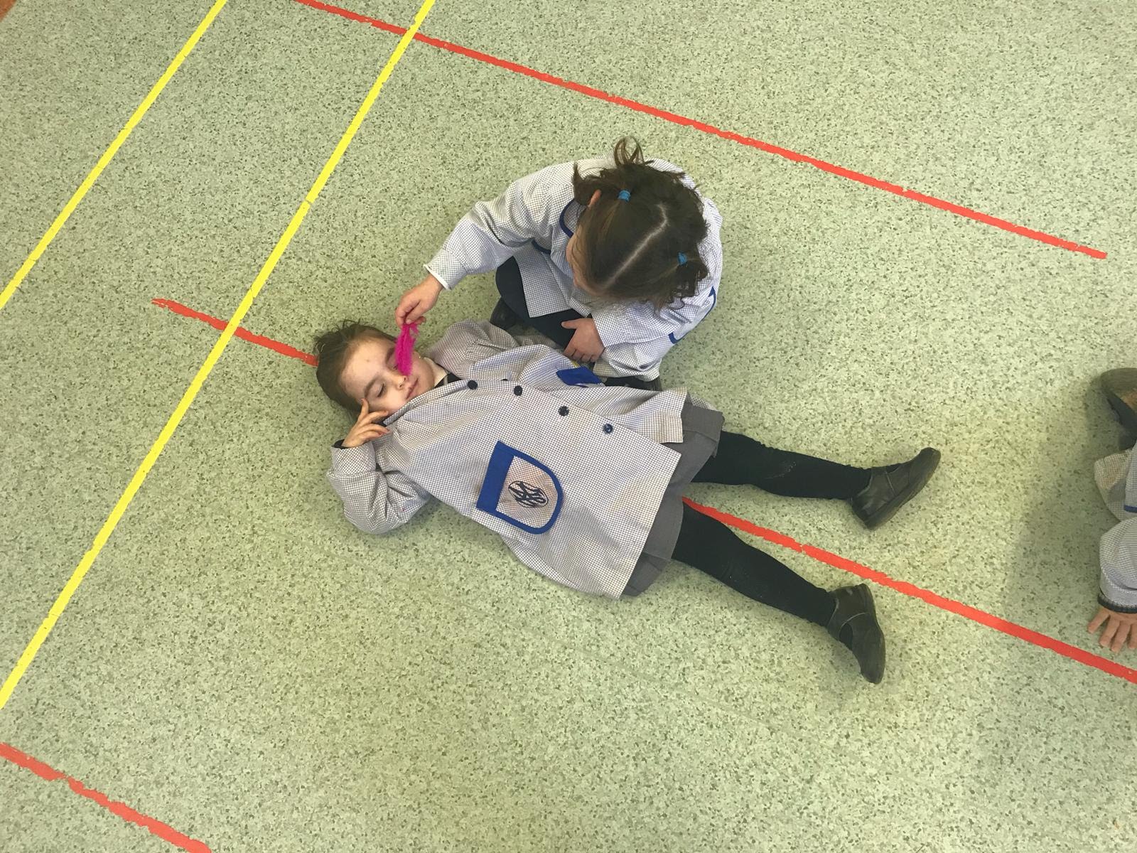 Els alumnes de P3 treballen la calma fent-se massatges amb plomes