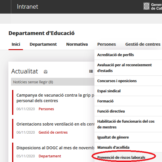 - Feu clic a l’apartat Persones > Prevenció de riscos laborals.