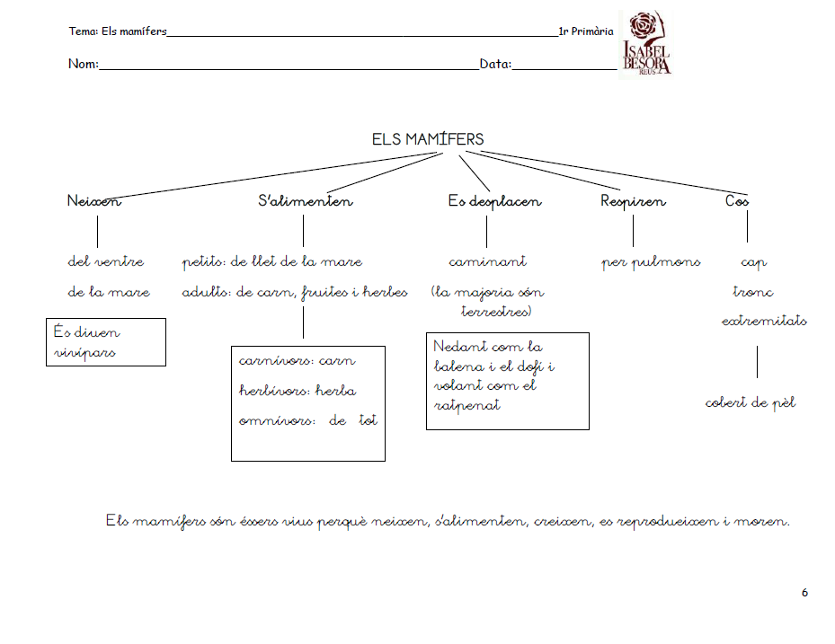 Us deixem el mapa conceptual per poder repassar el que hem estudiat dels mamífers: