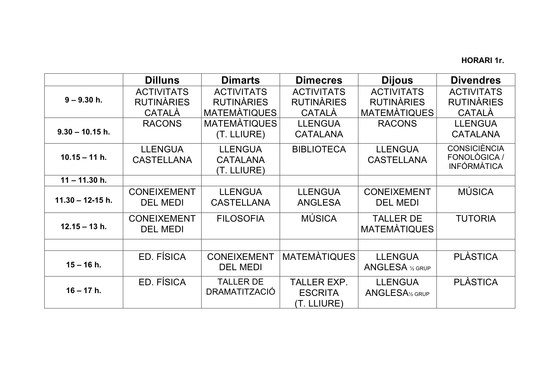Totes les assignatures són impartides pel tutor a excepció de les següents: