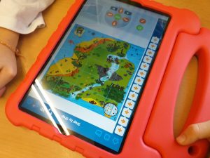 Un cop els hem vist, entre tots fem una primera activitat guiada, cadascú amb la seva tablet. Així anem descobrint els blocs, els escenaris, els personatges… Al final hem aconseguit fer moure un cotxe per la pantalla!