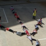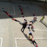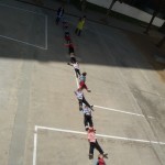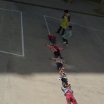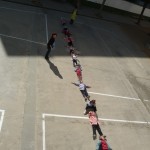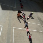 El cactus saguaro que es troba al desert de Sonora i Mojave, pot arribar a mesurar 15m. d’alçaria. Els nens i nenes volien saber quant eren 15m. Així doncs, van agafar una cinta mètrica i van mesurar al pati els 15m. Desprès, vam veure quants infants estirats necessitaven per fer els 15m. del cactus saguaro. I, vam descobrir que necessitavem 12 nens i nenes estirats.