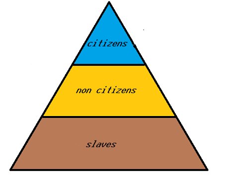 In ancient greece there were different social status, the most important in Athens was the citizens. A citizen was a person thet was born in Athens and who owned land there. After that, the non citizens, foreiguers and eomen. And finally the slaves, a slaves was a person that couldn’t vote, and also served the citizens and rich people.
