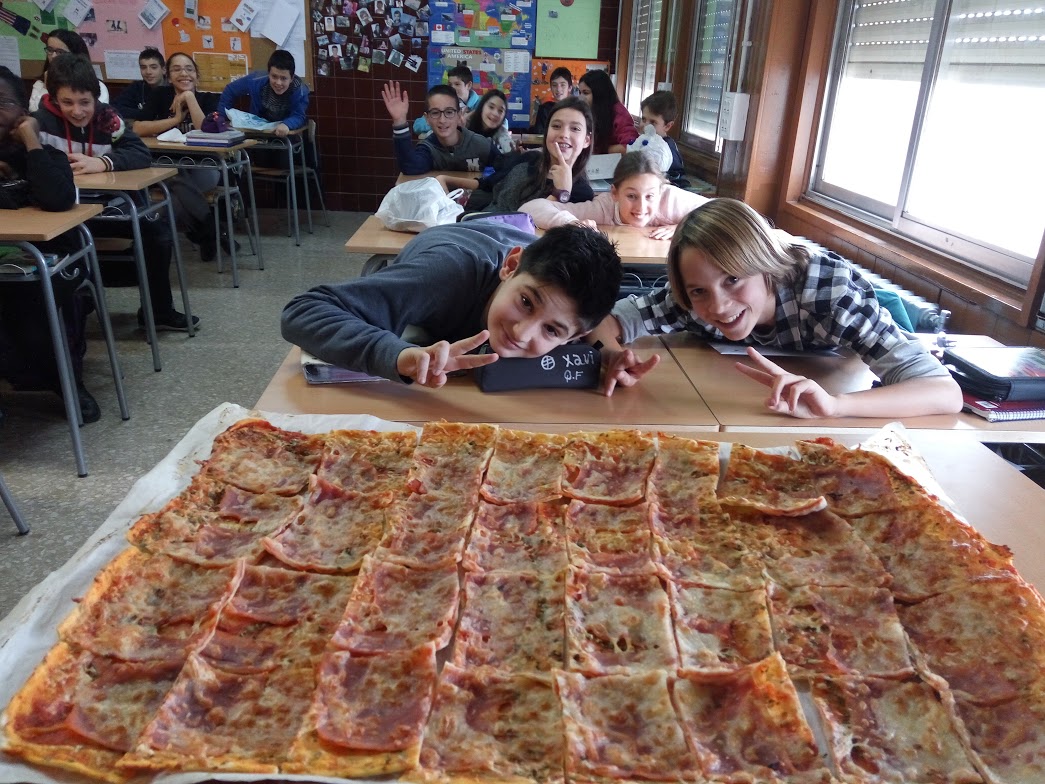 First it was a little bit weird the idea of having to do a Project in English but after some days of “practice”, we got the hang of it. Then most of us almost always talked in English during the class. The project was about the history of the Earth from Prehistory to Modern Age, everything in English and at the end of the project we had to build the final product, which was a board game for school library. After some days of starting this project the teachers introduced us to the “Pizza Challenge”. Which consists on, if the whole class speaks in English they gave us a pizza slice (every day), they needed to give us 8 slices for them to buy a pizza for the whole class and at the end of the first term we were able to eat some delicious pizza made in our school.