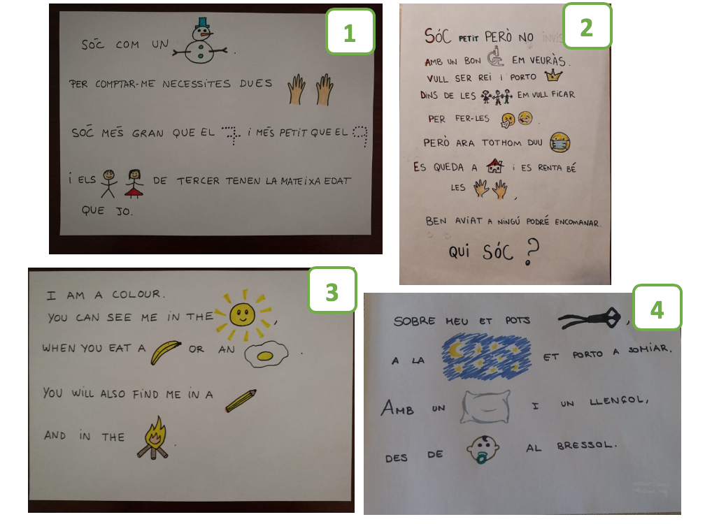 2. ESCOLTA LES QUATRE ENDEVINALLES I ESCRIU LES RESPOSTES