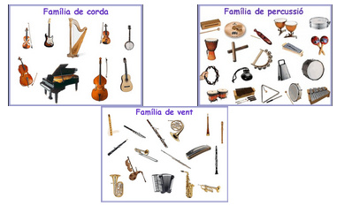 2. EN UN FULL, ESCRIU EL NOM DE L’INSTRUMENT I A QUINA FAMÍLIA PERTANY: VENT, PERCUSSIÓ, CORDA.