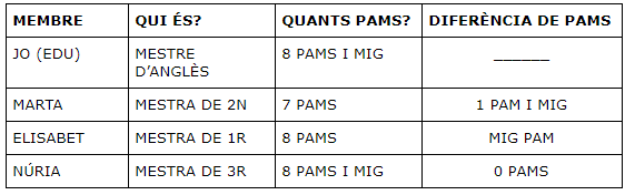 4.- CALCULA QUANTS PAMS DE MÉS O DE MENYS FAN EN COMPARACIÓ A TU