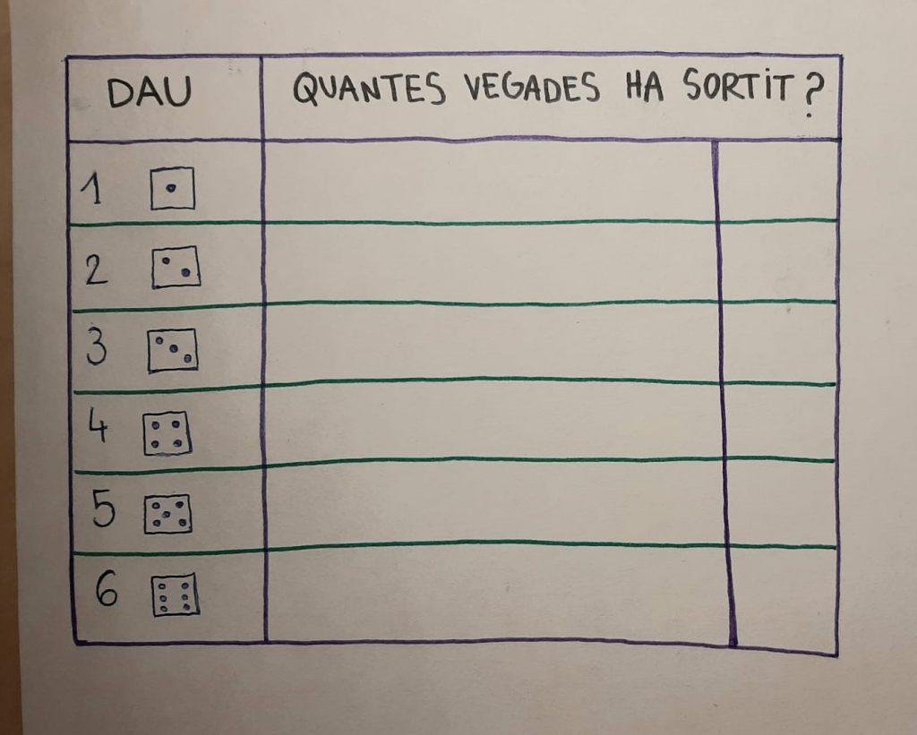 • FER UNA GRAELLA COMPTANT QUANTES VEGADES ET SURT CADA NÚMERO DEL DAU.
