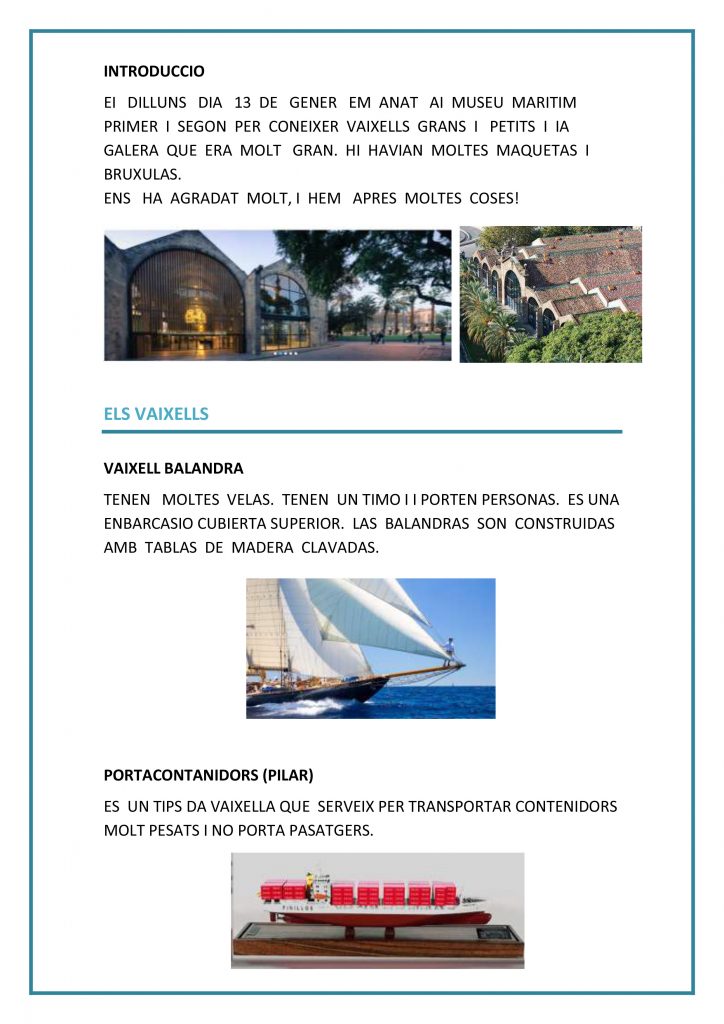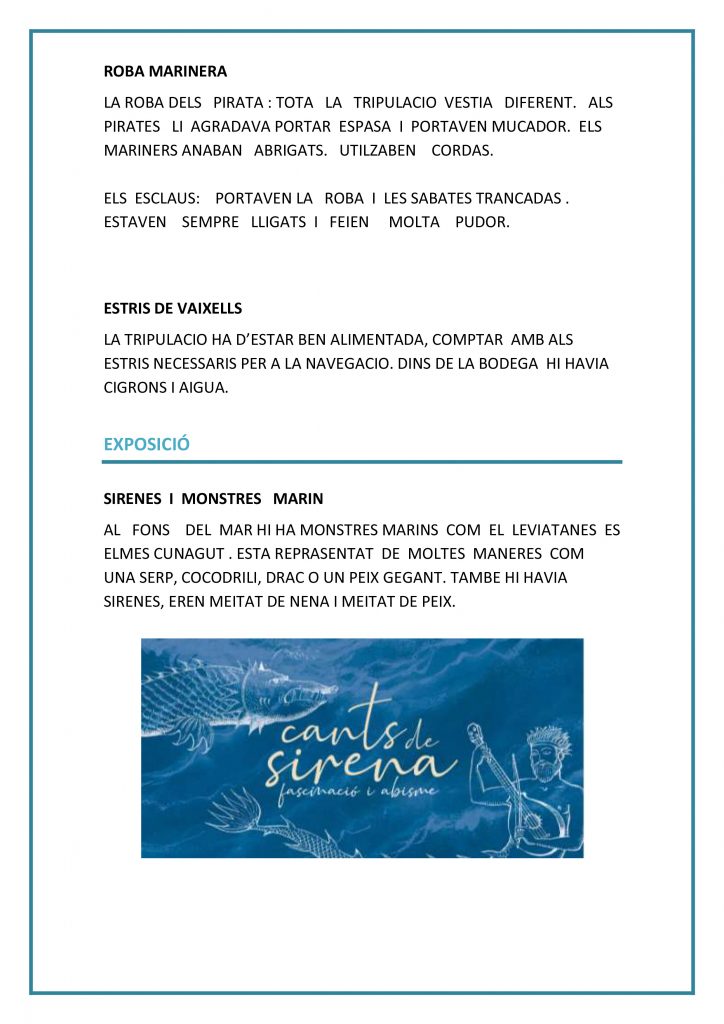Després a l’escola han preparat uns textos amb imatges de la sortida. Han aprés moltes coses, des dels vaixelles que s’exposen, les robes i estris mariners, fins a l’exposició temporal sobre monstres i sirenes.