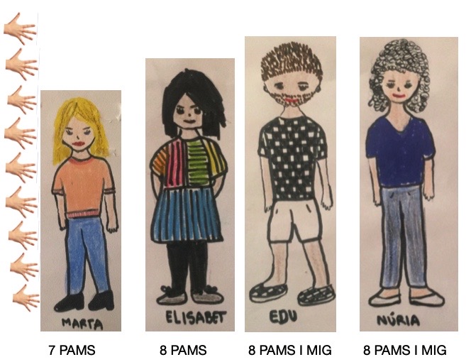 - PRESENTA A LES PERSONES AMB LES QUE VIUS I MEDEIX AMB PAMS QUAN MESUREN. DESPRÉS CALCULA LA DIFERÈNCIA DE PAMS ENTRE TU I L’ALTRE PERSONA.