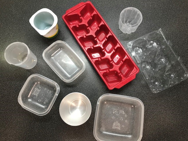 - Posar les joguines ben repartides per diversos recipients i afegir aigua de l’aixeta. Posar els recipients amb cura al congelador.