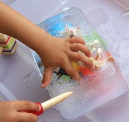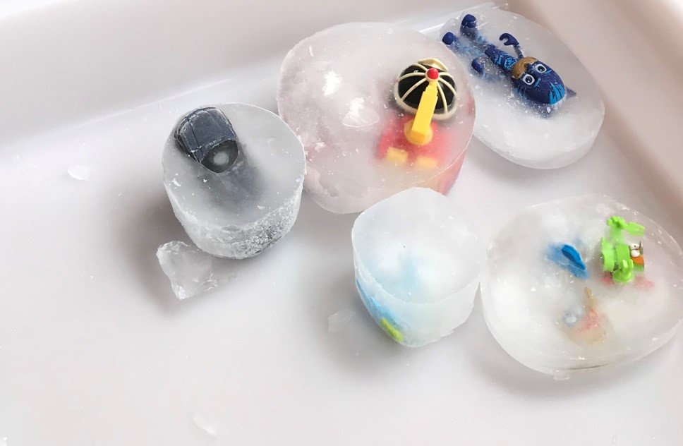 Et proposem agafar ninos, bales, peces de construcció… i congelar-ho amb diversos recipients. Una vegada congelats intentar rescatar aquestes joguines de totes les maneres possibles que se’t pugui ocórrer.