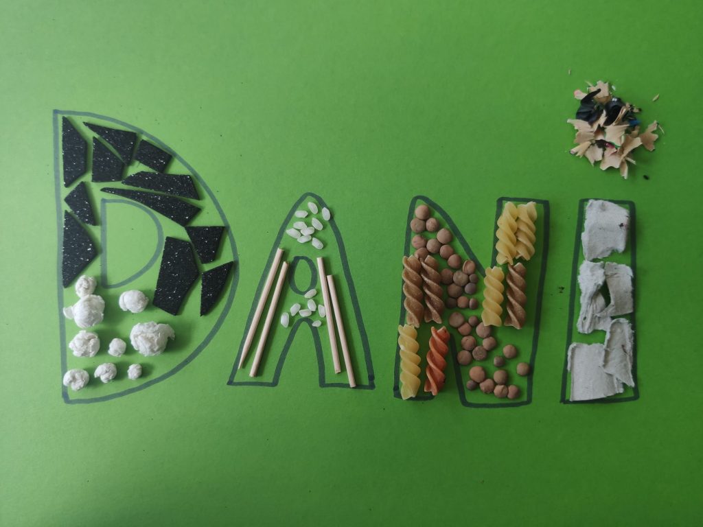 2. Recol.lecta material que et pugui servir per a decorar aquesta paraula o aquest dibuix.
