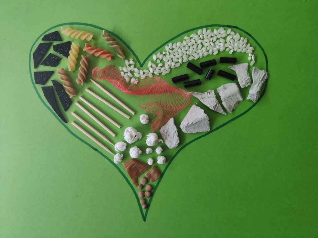 Material escollit: arròs, llenties, pela de ceba, canyeta de plàstic, paper de wc, punta de colors de fusta, pasta, foam, oueres de cartró, escuradents, tela