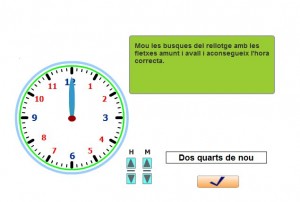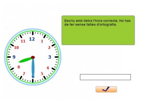 ARA ESCRIU L’HORA : RECORDA: PRIMER SÓN ELS QUARTS I DESPRÉS LES HORES.