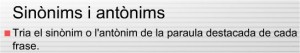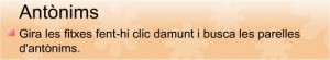 En aquesta activitat no s’acaba de llegir bé el que heu de fer, per poder-la fer correctament i llegir-la bé heu de clicar a sota de l’imatge on diu “Zona Clic- activitats- les paraules sinònimes.”