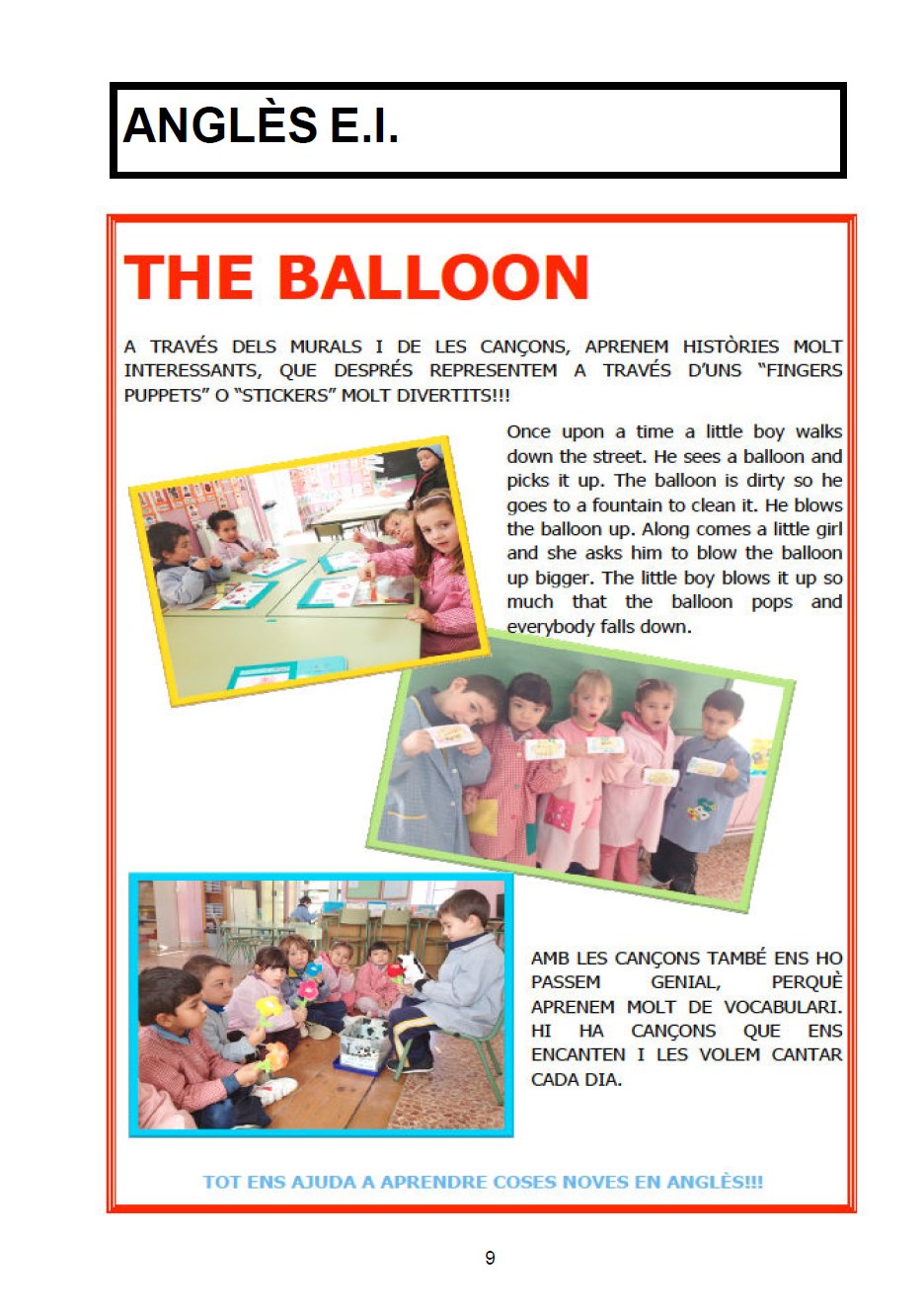 Per Sant Jordi, els nens d’Educació Infantil van fer uns tallers i per la tarda tota l’escola va gaudir de les cançons i poemes de Sant Jordi treballades pels nens.