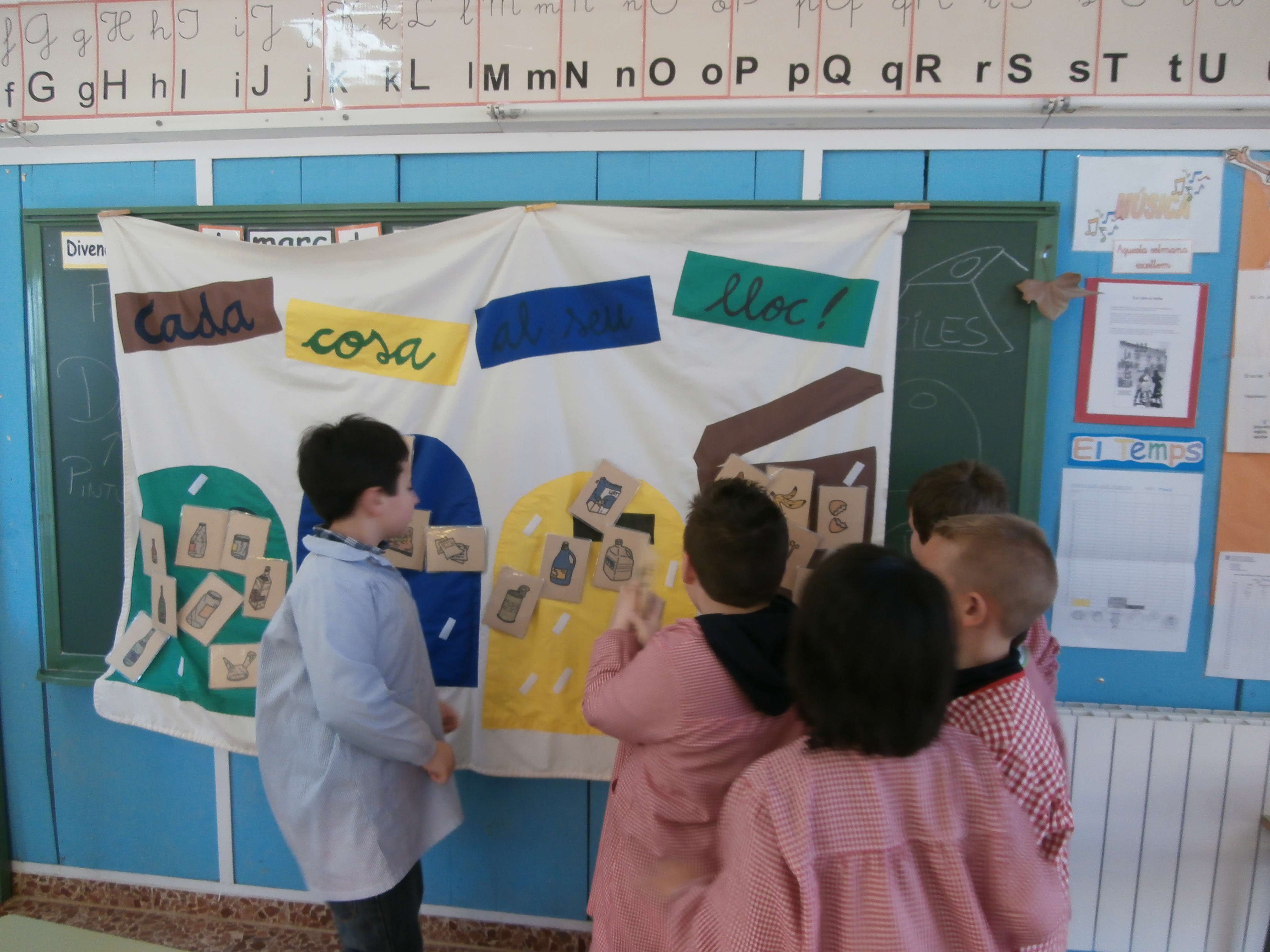 Avui els nens i nenes de cicle inicial hem fet un taller de reciclatge on hem aprés el significat de les 3R Reduir, Reutilitzar i Reciclar. A més hem practicat això del reciclatge separant les deixalles en contenidors de colors!!