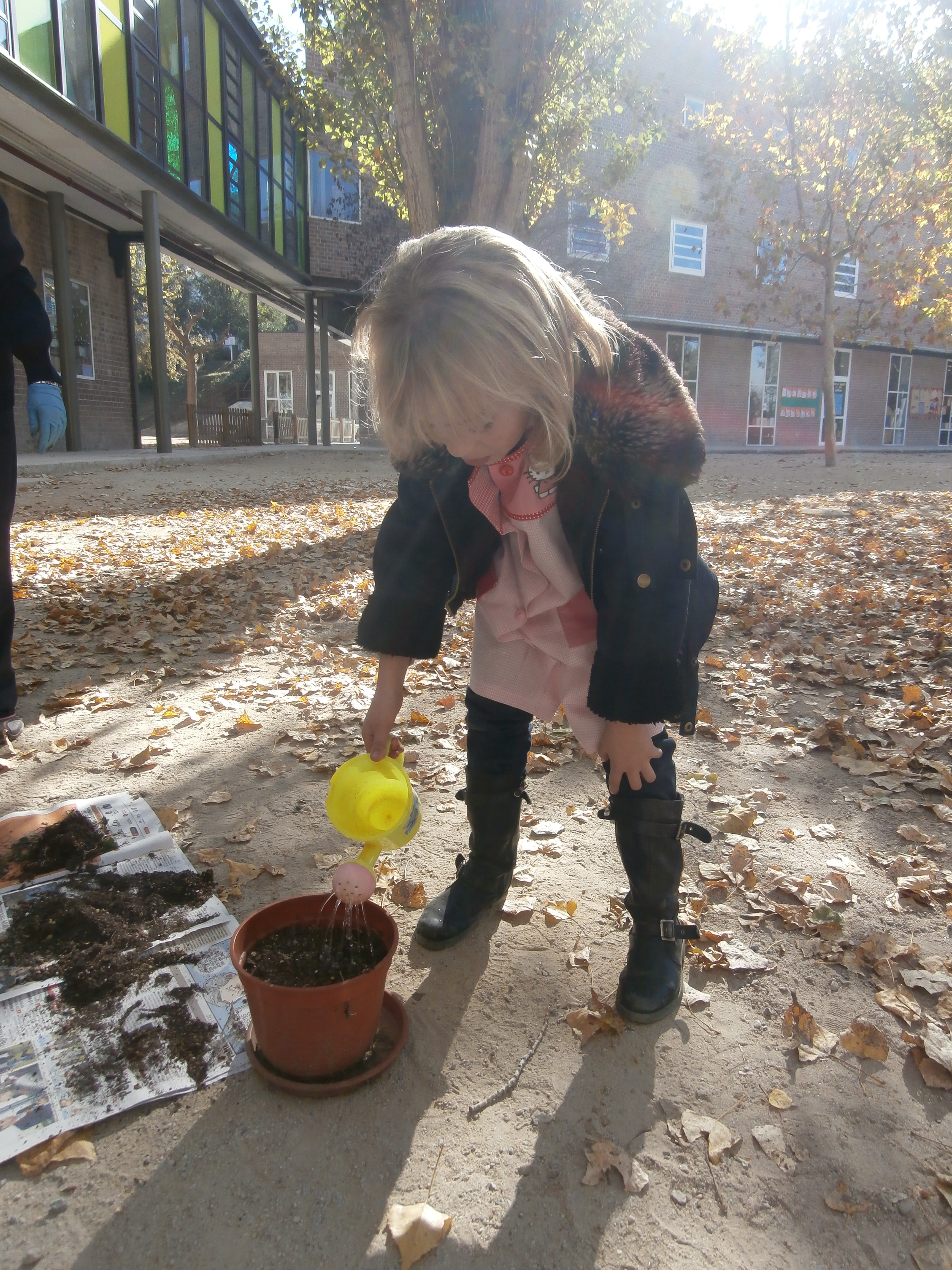 Aquesta setmana els nens i nenes de primer, amb l’ajuda de la Loli, la conserge de l’escola, hem plantat una menta. Ara hem de regar-la i cuidar-la perquè es faci gran!