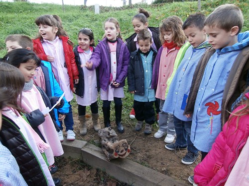 Els nens i nenes de 1r de la classe de les “Àligues” vam preparar una representació de titelles.