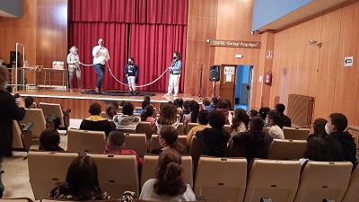 El cicle mitjà va assistir al teatre de l’escola per veure els trucs de màgia d’un mag. Com sol ser habitual alguns voluntaris van sortir a participar dels seus trucs. El torn de preguntes va ser llarguíssim i ningú volia marxar sense preguntar com feia aquells trucs. Va ser una actuació molt participativa i aplaudida.
