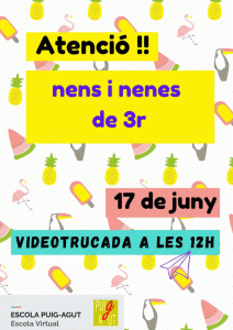 El dimecres 27 de maig de 17 a 18h de la tarda farem una videoconferència amb els vostres mestres i companys i companyes de 4t.
