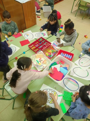 També estem treballant la motricitat fina elaborant eines, pintant amb pigments naturals i estampant amb les mans, com feien a les coves. Properament, continuarem investigant els animals prehistòrics a través de propostes vivencials i manipulatives.