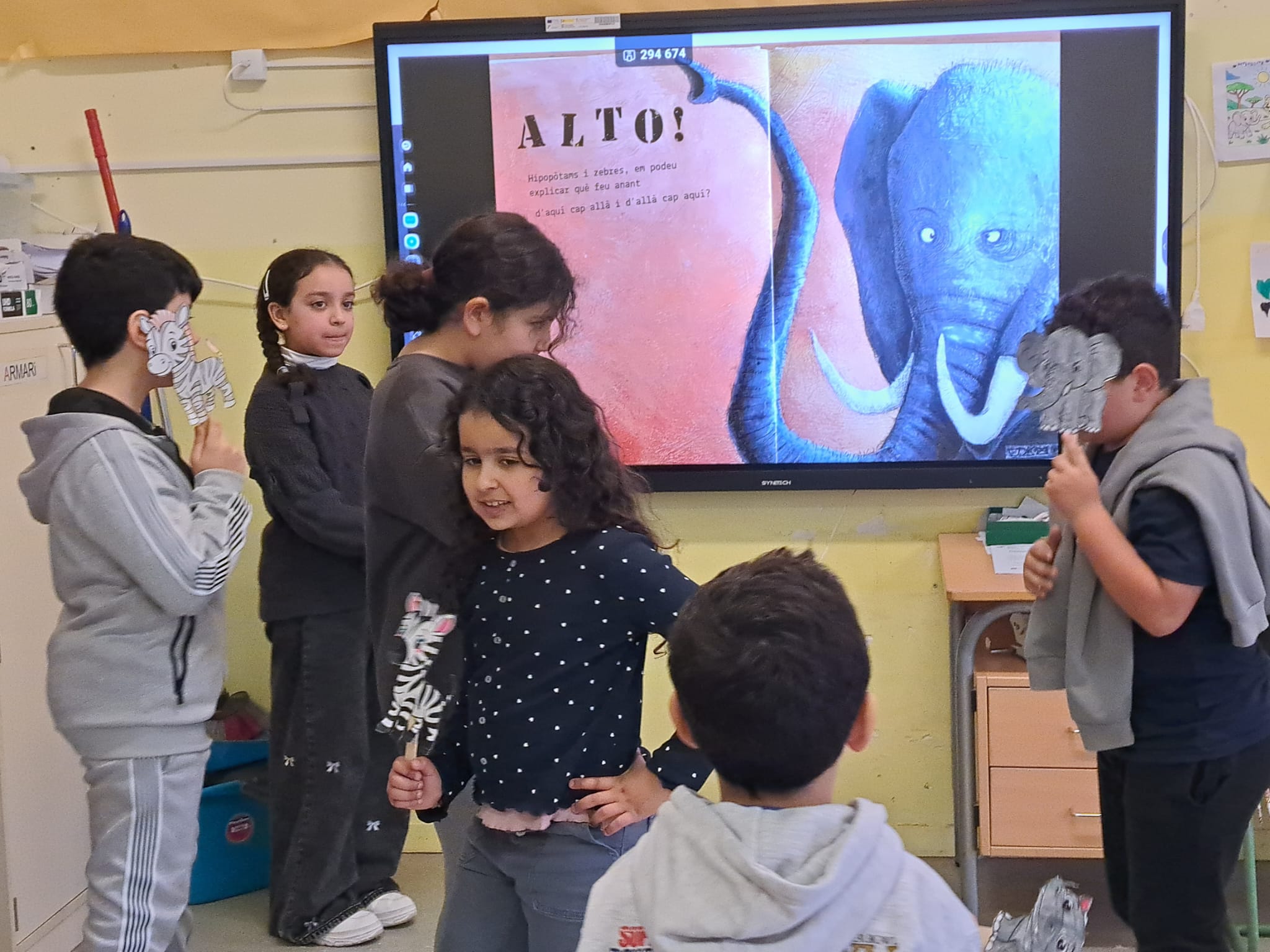 Aquest dilluns hem tingut una sorpresa molt literària. Han vingut a visitar-nos els nostres padrins lectors de les classes de 3r i 4rt de cicle mitjà. Ens han explicat “El Cuquedo”, un conte molt divertit que parla d’un petit ésser que té espantats a tots els animals de la sabana. Després hem compartit una estona de lectura i jocs. Ens ho hem passat molt bé. S’han ben merescut un super xip, xip, xip. Ja estem esperant la pròxima visita!