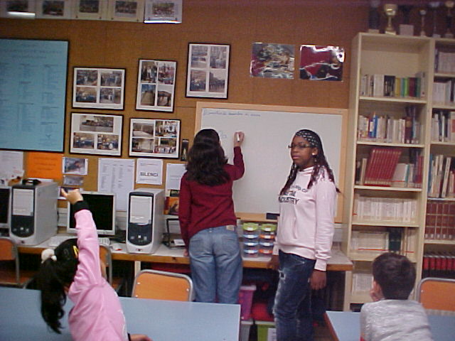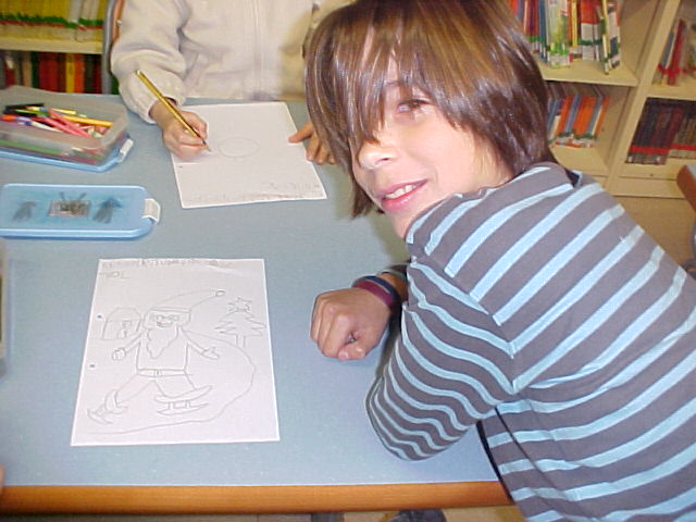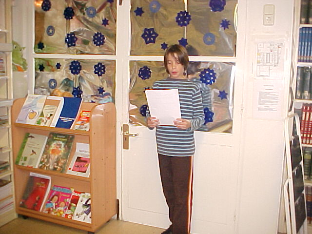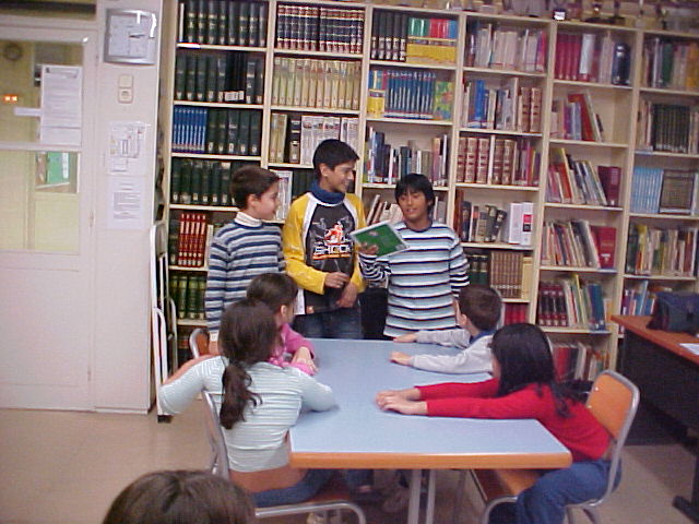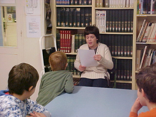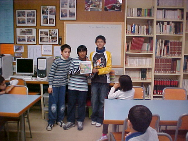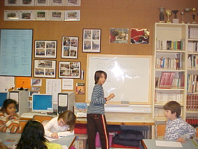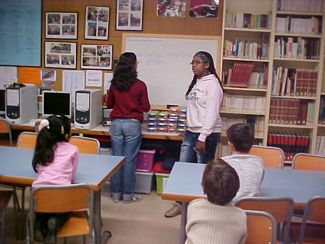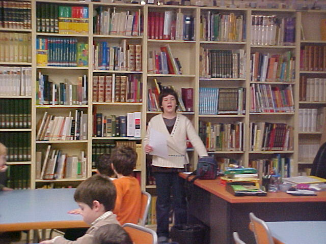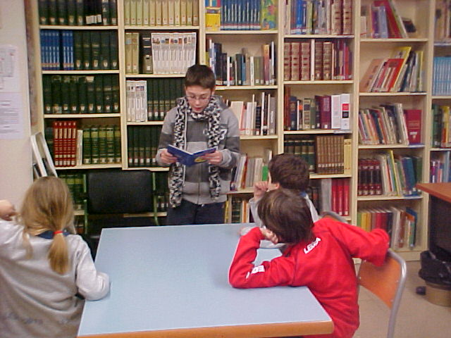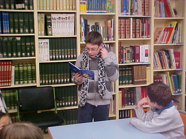 “Comença l’aventura amb les tres bessones” explicat pel David Aguilera de sisè A als nens i nenes de primer A.