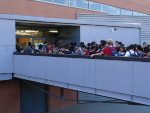 Cada any el primer dia de curs és el més traginat. Per començar aquest any, només arribar a l’institut, ja veies que hi havia molta més gent que l’any passat. Aquest any hi ha molts nois i noies de primer. A l’hora d’entrar havies d’esquivar la gent que entrava a l’institut encara que semblés impossible.